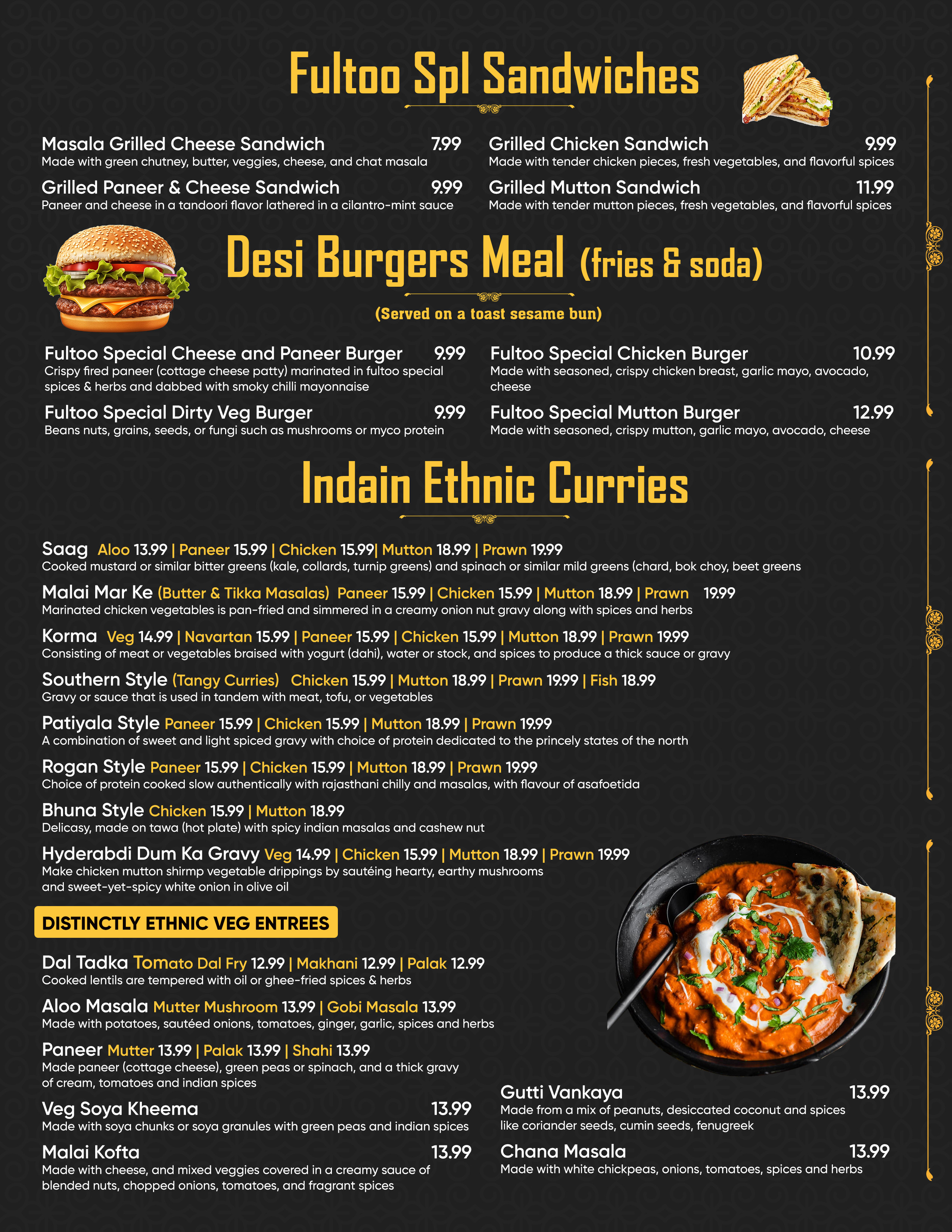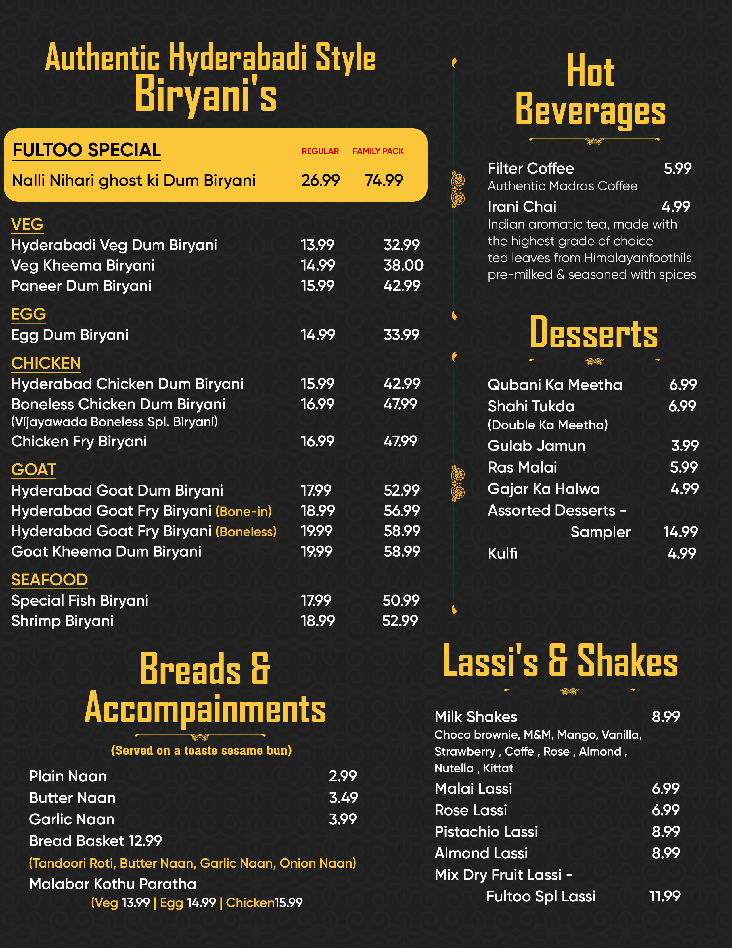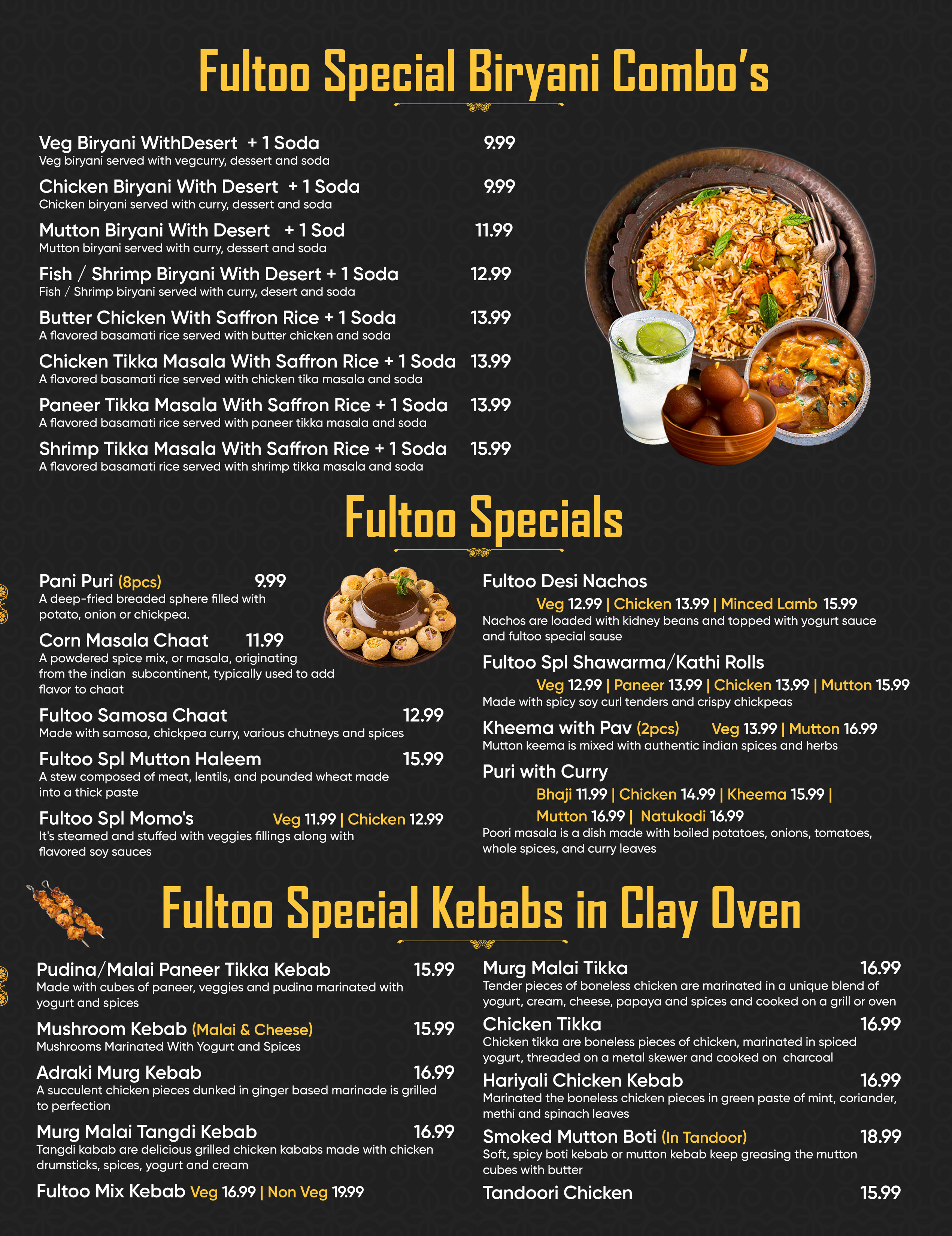 We choose to focus on quality, freshness and seasonal ingredients, which we try to source from among the small local suppliers. We serve cuisine from all regions of much diverse India as well as biryani based dishes.